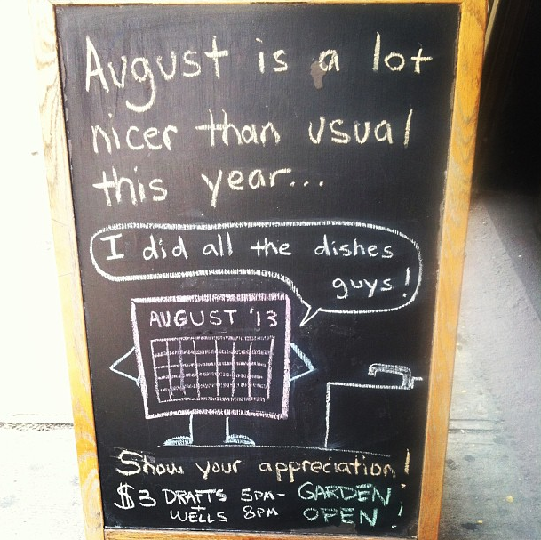 I am also in charge of the chalkboard at the bar on nights when I work. Here are some of my favorites, split into categories.